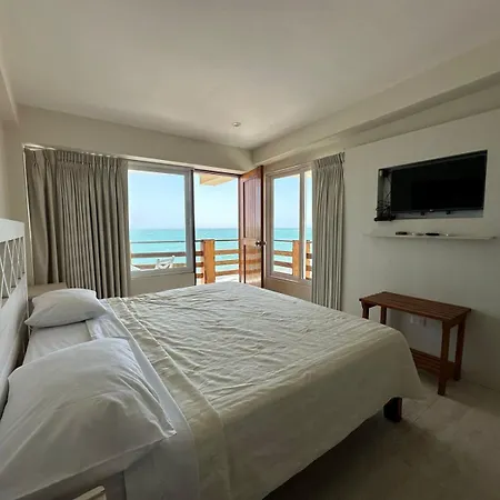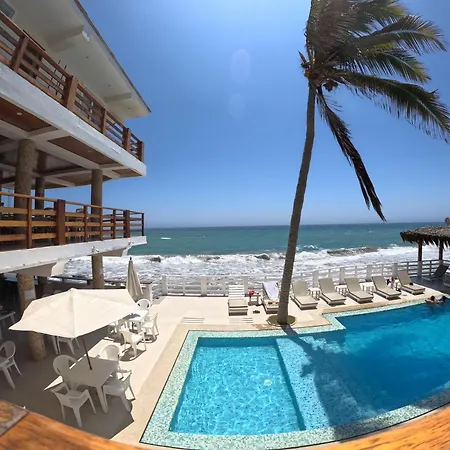 Bungalows Playa Bonita Máncora cuenta con una terraza con vistas al mar y una piscina.